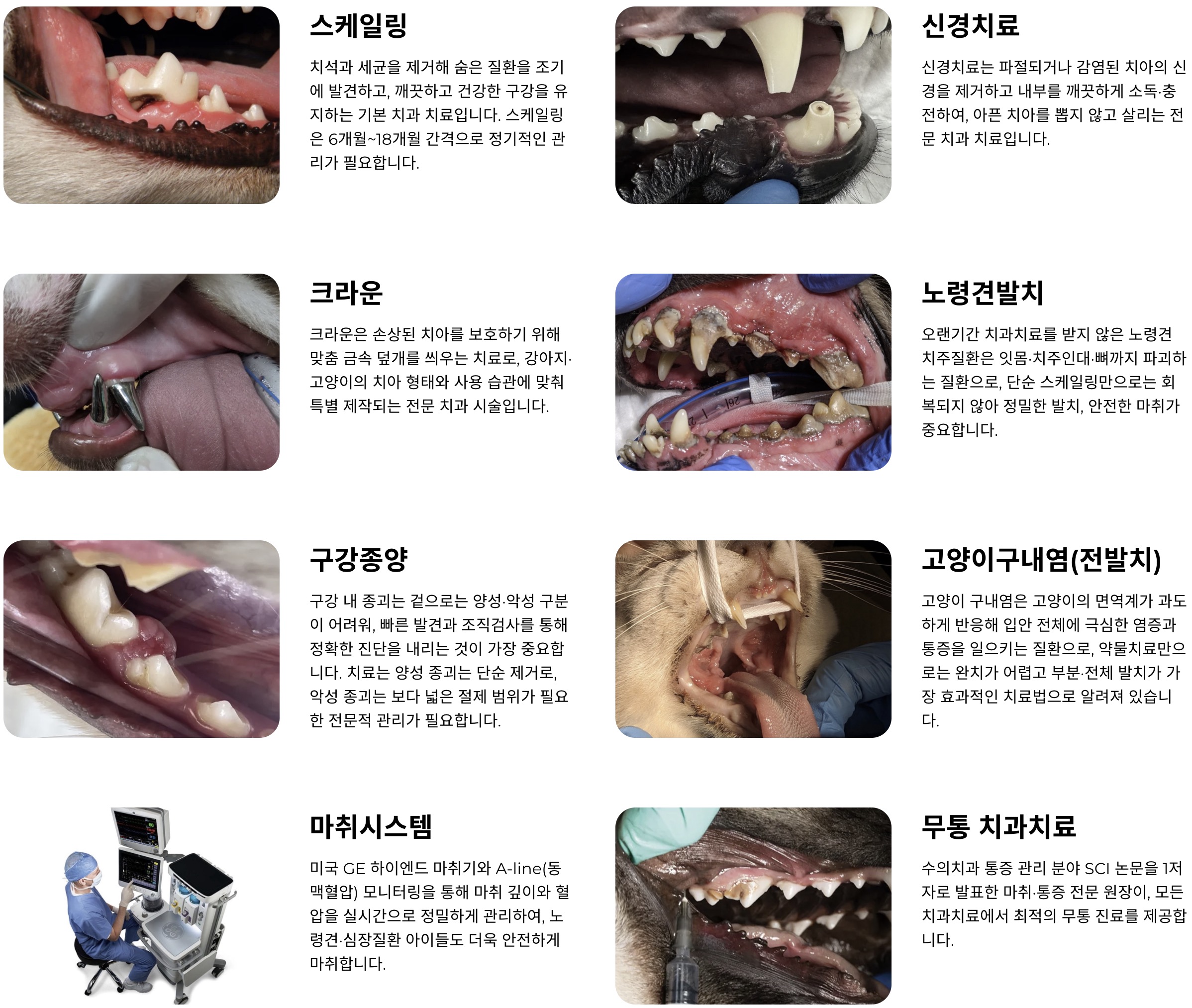 신경치료 · 크라운 · 노령견 발치 · 고양이 전발치 등
